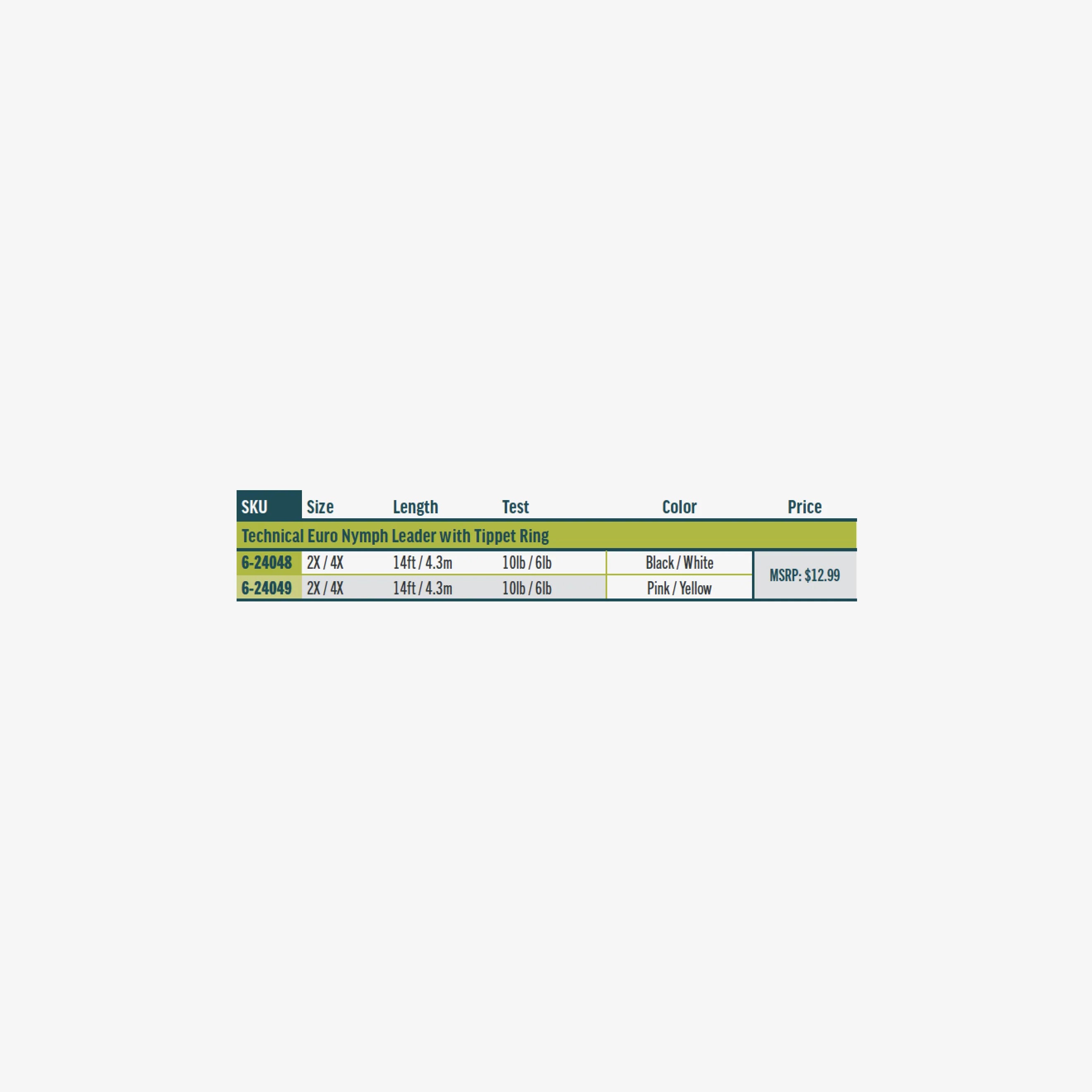 - Two-tone indicator tippet section for contrast and detecting the subtlest of takes